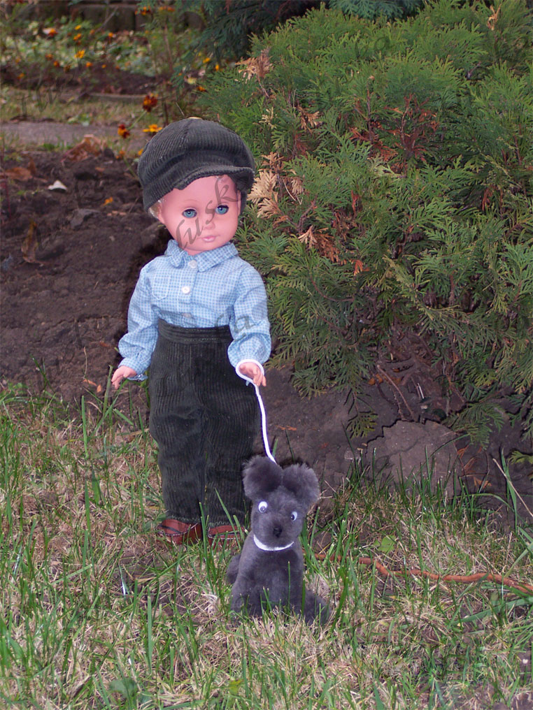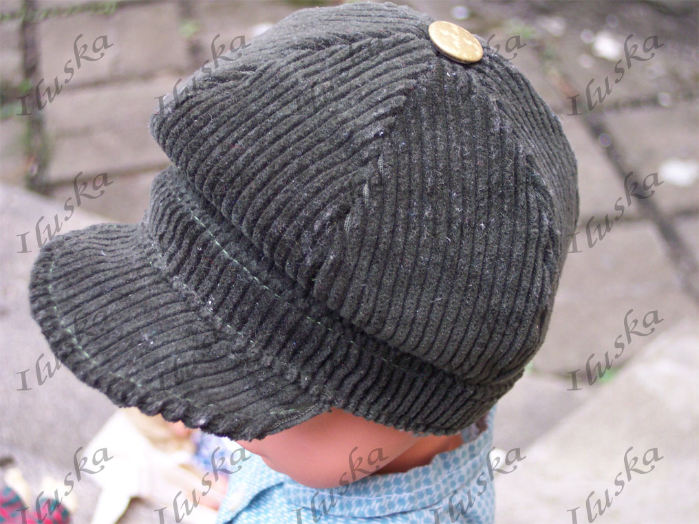 pustit na výstavu, musela jsem něco vymyslet a ... ušila jsem jí k manžestrovým kalhotům i čepici z téhož materiálu.