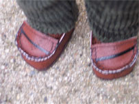Košile je z bavlny s drobným vzorkem. Mokasíny jsou z koženky.