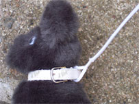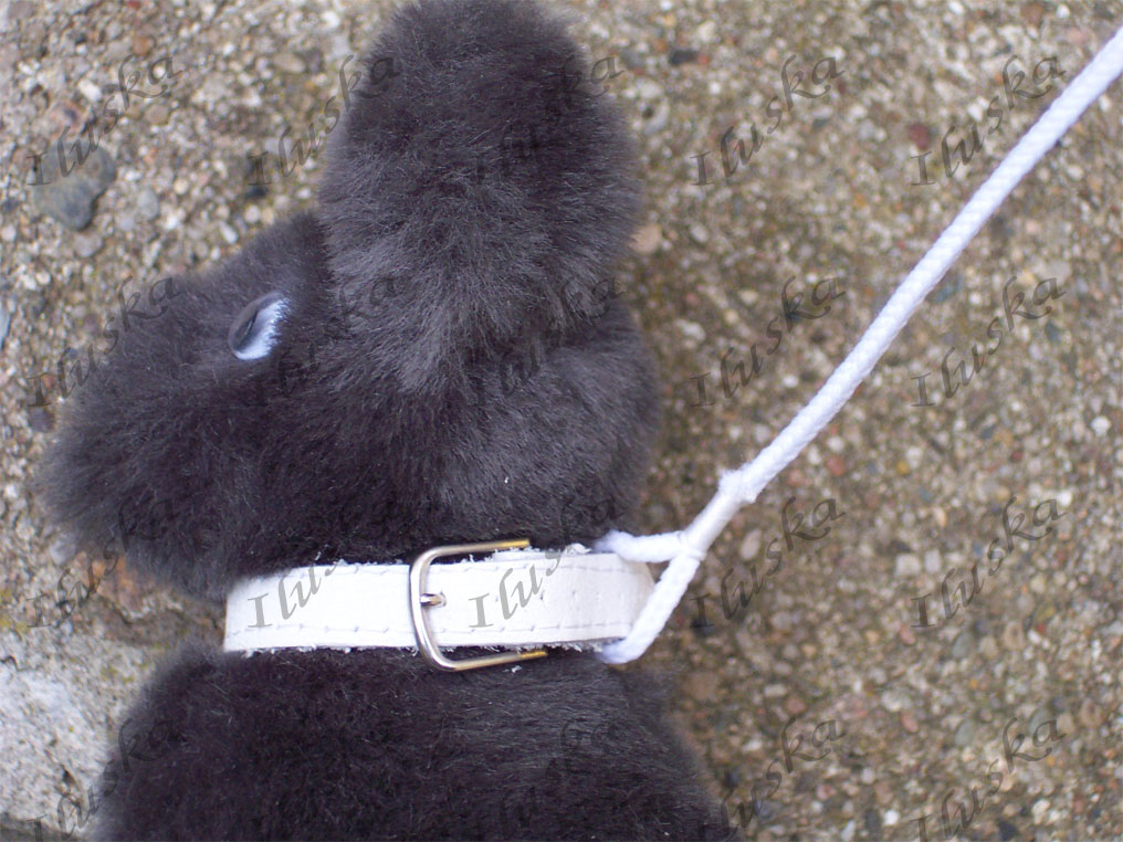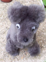 Pejsek neurčité rasy je také z mé dílny - z šedého plyše s koženým čumáčkem. Přezka na obojku byla kdysi přezkou na pásku k hodinkám.