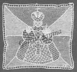 do čtverce 15x15 cm vymyslet a vytvořit motiv ze šité krajky. Všechny čtverce se pak spojily